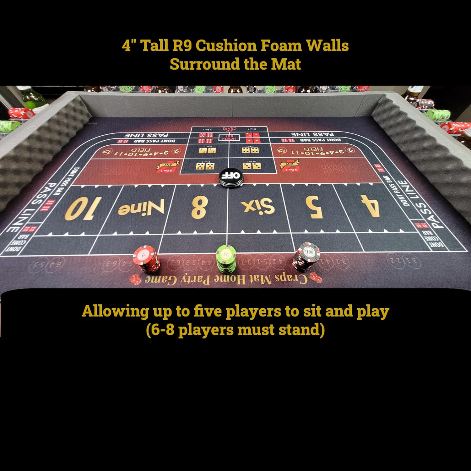 Premium Craps Tabletop Mat w/ Walls + Chips - 52 x 28 inches